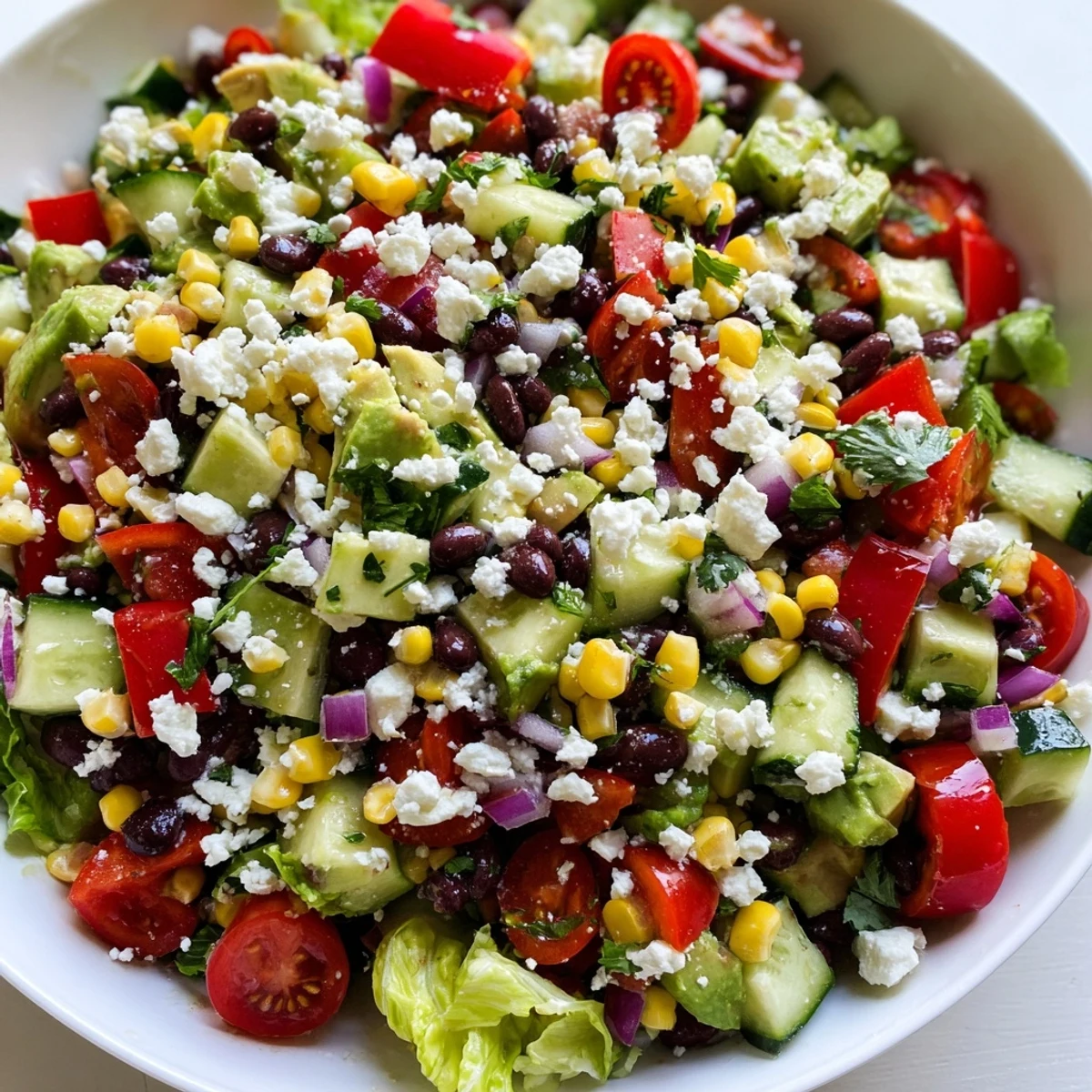 This colorful Mexican chopped salad brings together crisp romaine, sweet cherry tomatoes, refreshing cucumber, and bell pepper with protein-rich black beans and creamy avocado. The homemade lime-cilantro dressing ties everything together with bright acidity and warm cumin notes.