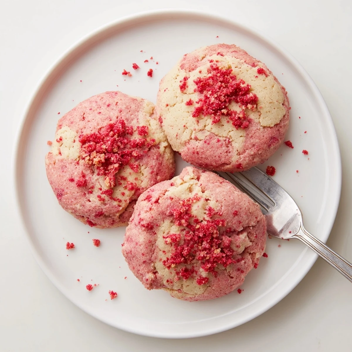 Freeze-dried strawberries are absolutely essential here because fresh strawberries would add too much moisture and make the cookies soggy. Pulse them in a food processor until they are a fine powder, but do not overprocess or they will turn into a sticky paste that is hard to work with. The powder distributes evenly through the dough for consistent strawberry flavor in every bite.
